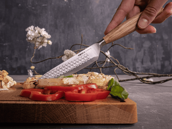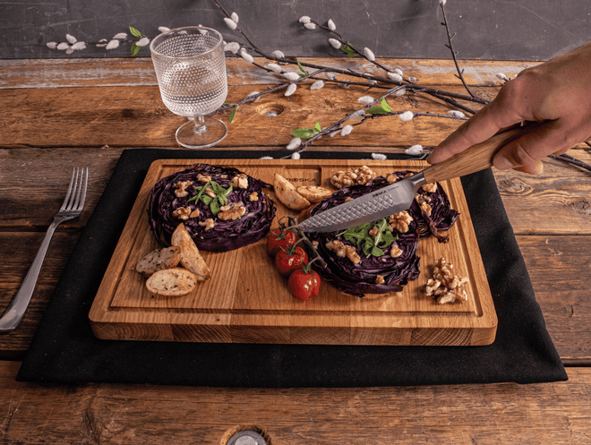 Een smaakvolle steak van broccoli, rode kool of flespompoen? Veel groentes kunnen in een handomdraai naar een steak omgetoverd worden. Met een goed steakmes snijd je in no time mooie stukjes van je favoriete groentesteak. De steakmessen zijn gemaakt van een hoge kwaliteit RVS met de ideale hardheid. Hierdoor blijft het steakmes zeer lang scherp en kan het ook heel goed hardere groentes aan om te snijden. De kleurrijke steak presenteer je met onze Dining Boards op een robuuste houten serveerplank aan je gasten.