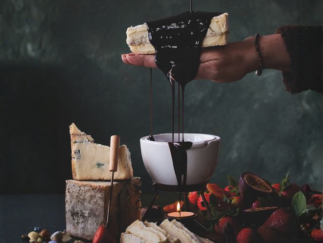 Het leven is te kort om alles serieus te nemen. Dus trek oude kleren aan en daag je Valentijn uit tot een chocoladegevecht. Of trek zo weinig mogelijk aan, pak penselen erbij en gebruik elkaar als een levend doek voor een chocolade schilderij. In onze Choco Fondue Marie blijft de chocolade urenlang warm, zonder dat het aanbrandt. Perfect als je tussendoor even afgeleid wordt 😉 Kleine side note: het moment mag heet zijn, de chocolade liever niet. Laat ’m even afkoelen voor je begint.