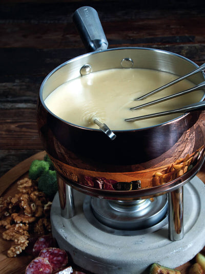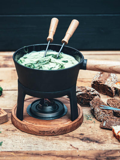 - Houd de fonduepan aan de buitenkant schoon, zodat de vlam niet via de kaas in de pan kan slaan.