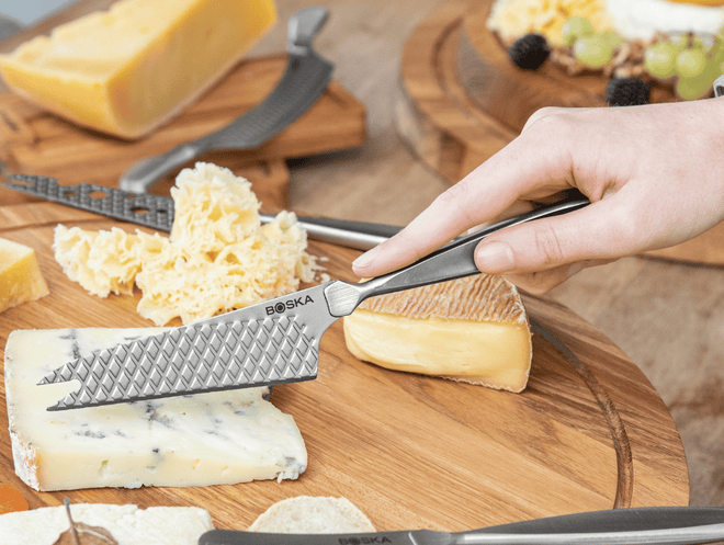 We moeten eerlijk toegeven; een hoop van onze werknemers wisten – voordat ze bij BOSKA kwamen werken – ook niet waarom er verschillende kaasmessen bij een kaasplankje lagen. “Want elke kaas kun je toch gewoon met een mes uit je besteklade snijden?” Nee, zeker niet! Al die verschillende kaasmessen hebben daadwerkelijk een functie. Wat dit is, zullen we in deze blog aan je uitleggen. Dan weet je de volgende keer dat je je familie en vrienden met een kaasplankje verrast, precies welke messen hierbij horen.