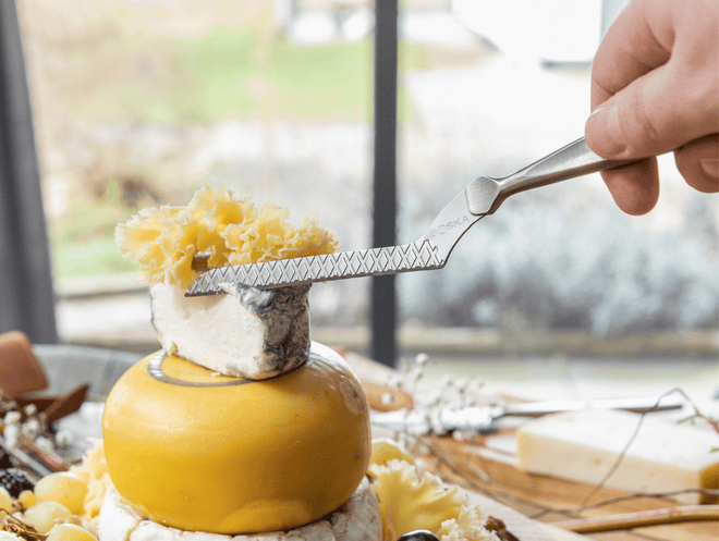 - Speciale eigenschappen: gebruik de serveerpunt om er een stukje kaas aan te prikken. Zo reik je iemand kaas aan, zonder er met je blote handen aan te zitten. Extra hygiënisch.