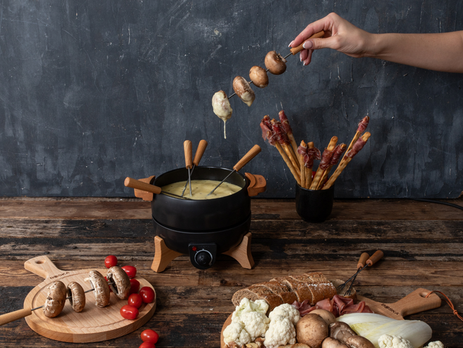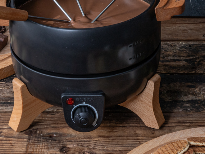 Der Fehler: Dein Käse wird so dick, dass deine Gabel nicht mehr herauskommt, oder schlimmer noch, er brennt an. Die Lösung: Halte die Temperatur niedrig und rühre regelmäßig um. Wenn der Käse zu dick wird, füge einen Schuss Wein hinzu. Mit BOSKAs elektrischen Fonduesets kannst du die Temperatur perfekt regeln, sodass verbrannter Käse der Vergangenheit angehört.