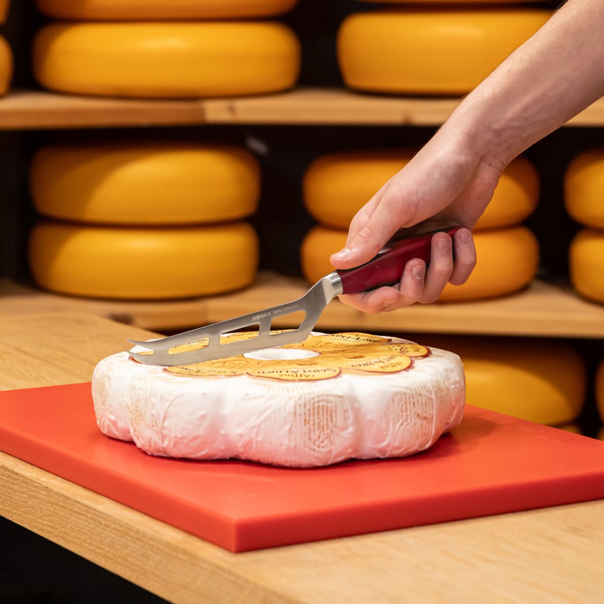 Die HACCP-Vorschriften in der Lebensmittelindustrie sind äußerst streng. Das BOSKA-Farbkonzept erleichtert Ihnen die Einhaltung der Hygienevorschriften. Die Farbe des Griffs zeigt an, für welche Käsesorte das Messer verwendet wird: Rot für Rotschmierkäse, Weiß für Weißschimmelkäse und Blau für Blauschimmelkäse. Schwarz ist für den allgemeinen Gebrauch bestimmt.