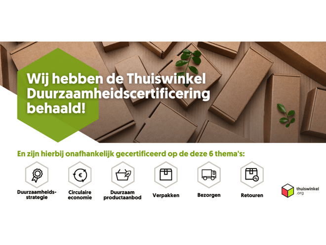 At BOSKA, sustainability comes first, and we’re proud to announce that we have obtained the Thuiswinkel Sustainability Certification! This certification confirms that we have been assessed on six key themes: our sustainability strategy, circular economy, sustainable product range, packaging, delivery, and returns.