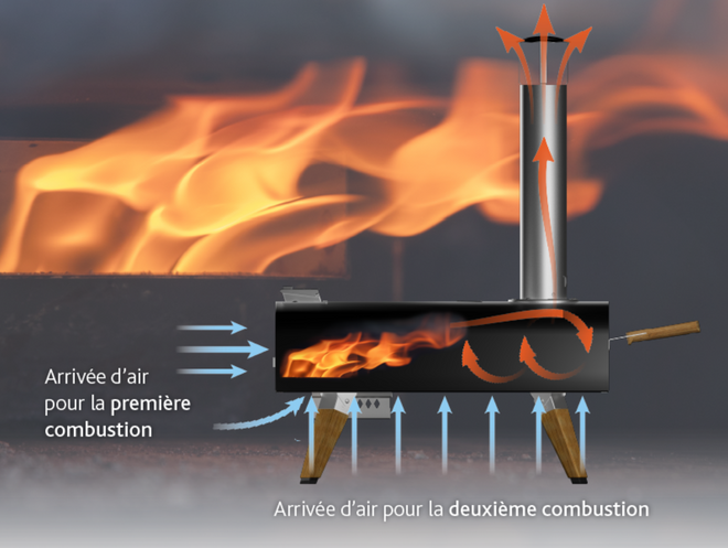Le four à pizza Pro utilise la seconde combustion : une technique intelligente dans laquelle la chaleur résiduelle et les gaz de combustion sont rallumés. De cette façon, le four atteint des températures plus élevées plus rapidement, brûle plus proprement et utilise moins de granulés de bois. Le résultat ? Moins de fumée et de cendres, chaleur stable et pizzas prêtes en 90 secondes.