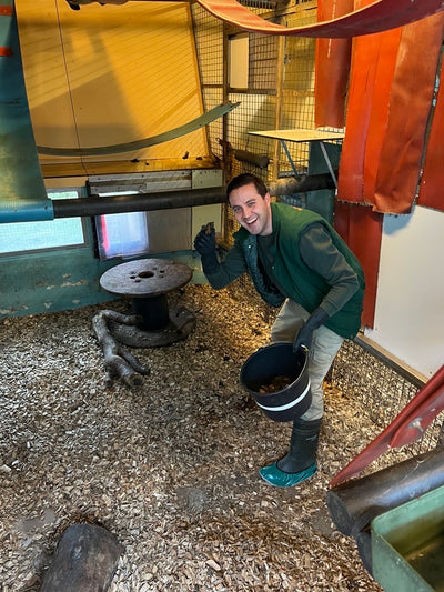 « Pour notre bénévolat, nous avons choisi d’aller aider pendant une journée chez Stichting AAP avec toute l’équipe. Toutes sortes de tâches nous y attendaient : nettoyer les enclos des singes, tailler des haies, ramasser des feuilles ou enlever les roseaux le long de la rivière.