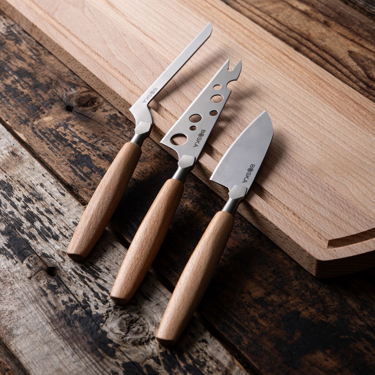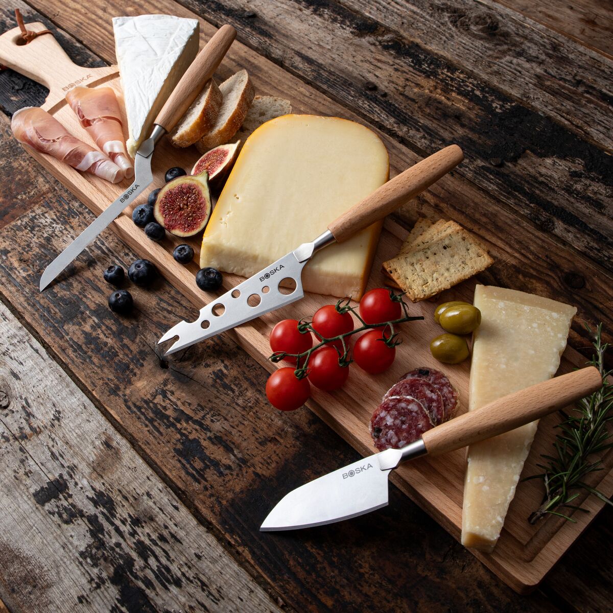 • Trois couteaux spécialisés : Conçus pour tirer le meilleur parti des fromages à pâte molle (comme le brie), mi-dure (comme le Port-Salut) et dure (comme le Manchego).