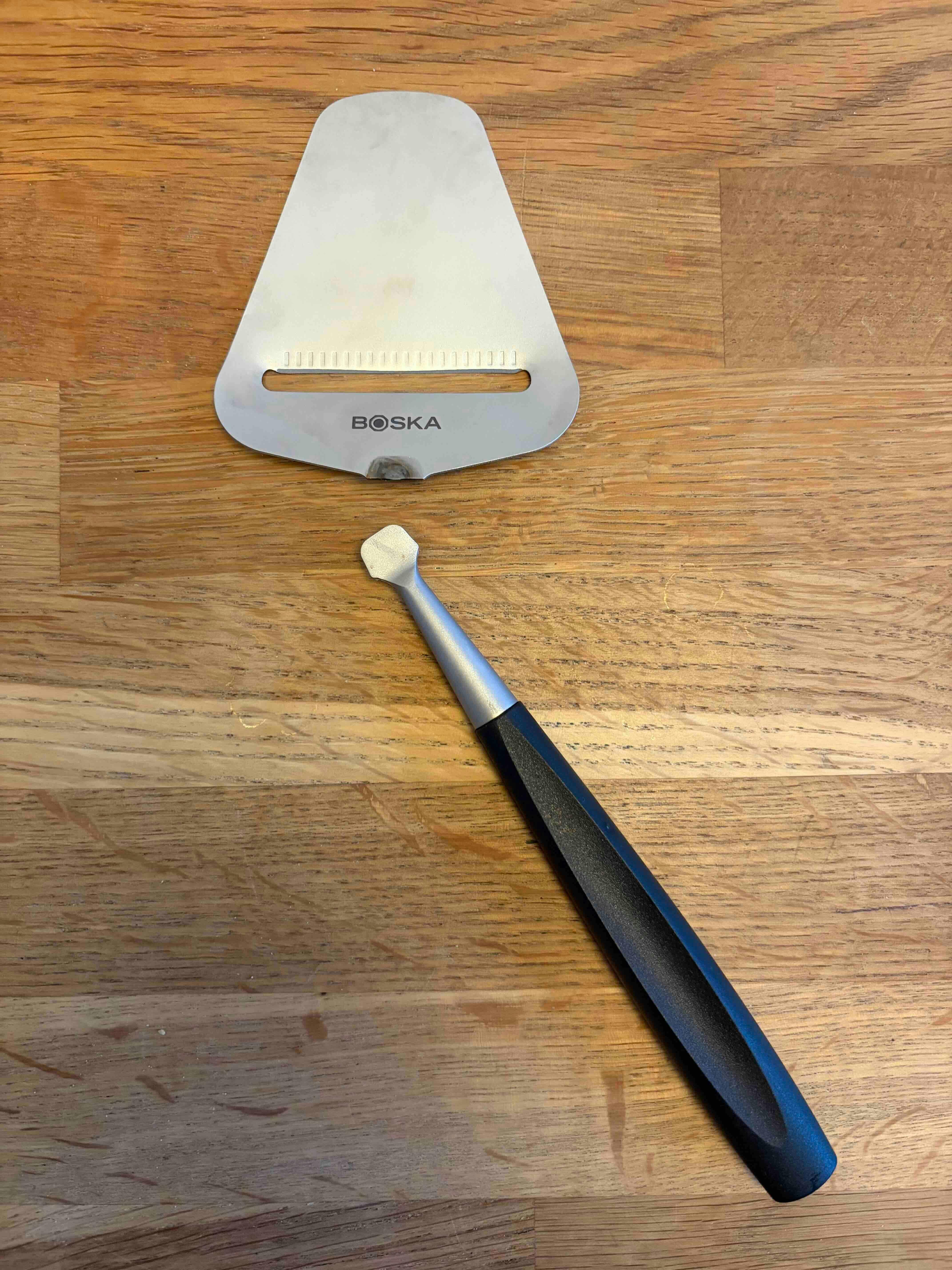 Na 20 jaar nieuwe kaasschaaf gekocht (Milano+). Binnen een week kapot. Kan gebeuren, teruggestuurd en nieuwe besteld. Drie weken later is de nieuwe ook weer kapot. Het lijkt een ontwerpfout van de aansluiting steel en schaafblad.